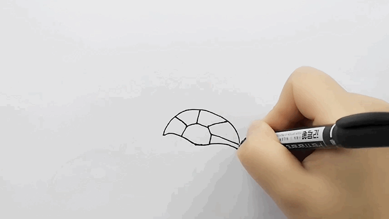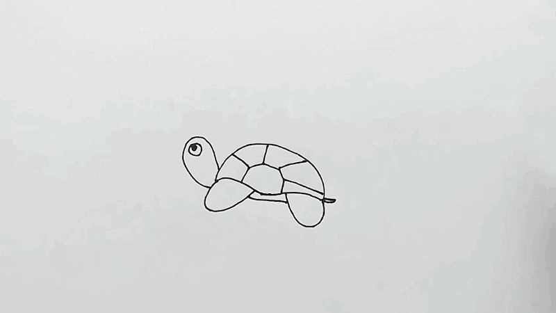 2、画出乌龟的脚丫、尾巴、脑袋和眼睛。