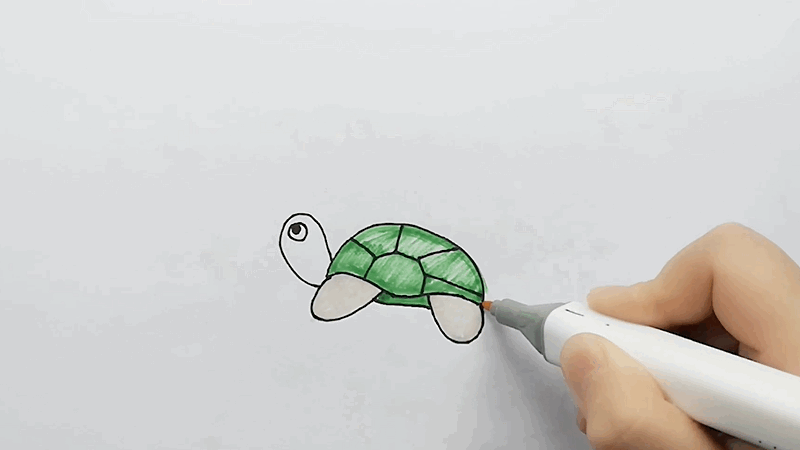 3、给乌龟的龟壳和身体涂上漂亮的颜色。